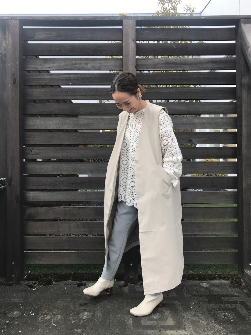 ロングジレとレース合わせが春っぽくて可愛いです