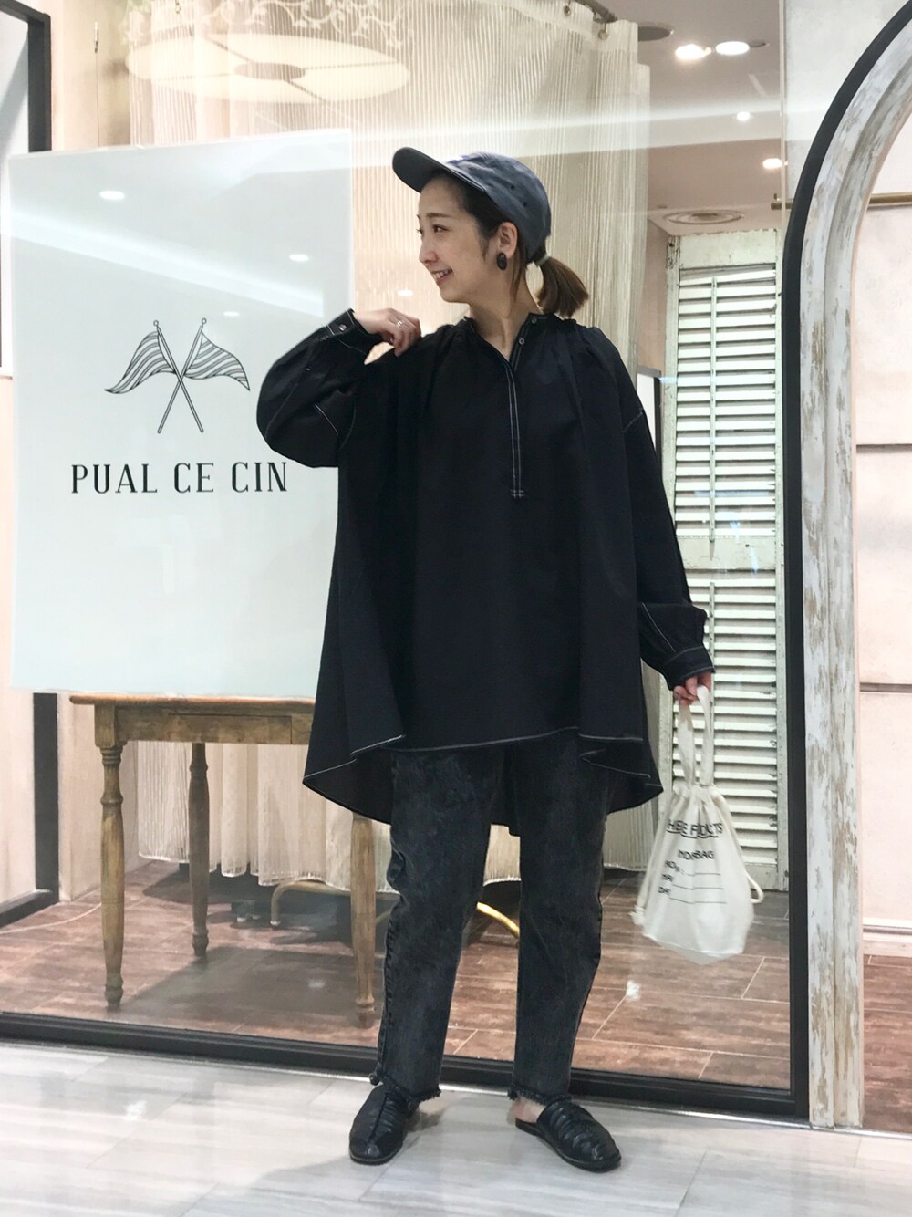 白ステッチが可愛い前後差のブラウスでブラックコーデ