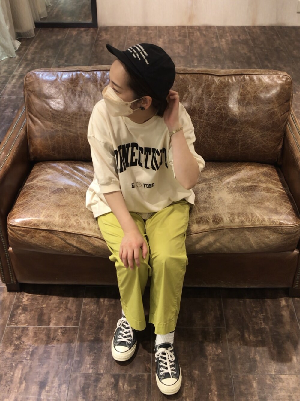 トレンドのロゴTでカラーパンツコーデ