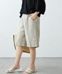 バミューダパンツはロング丈の羽織もので大人っぽく。 羽織のワンピースは前後で着用出来ます。