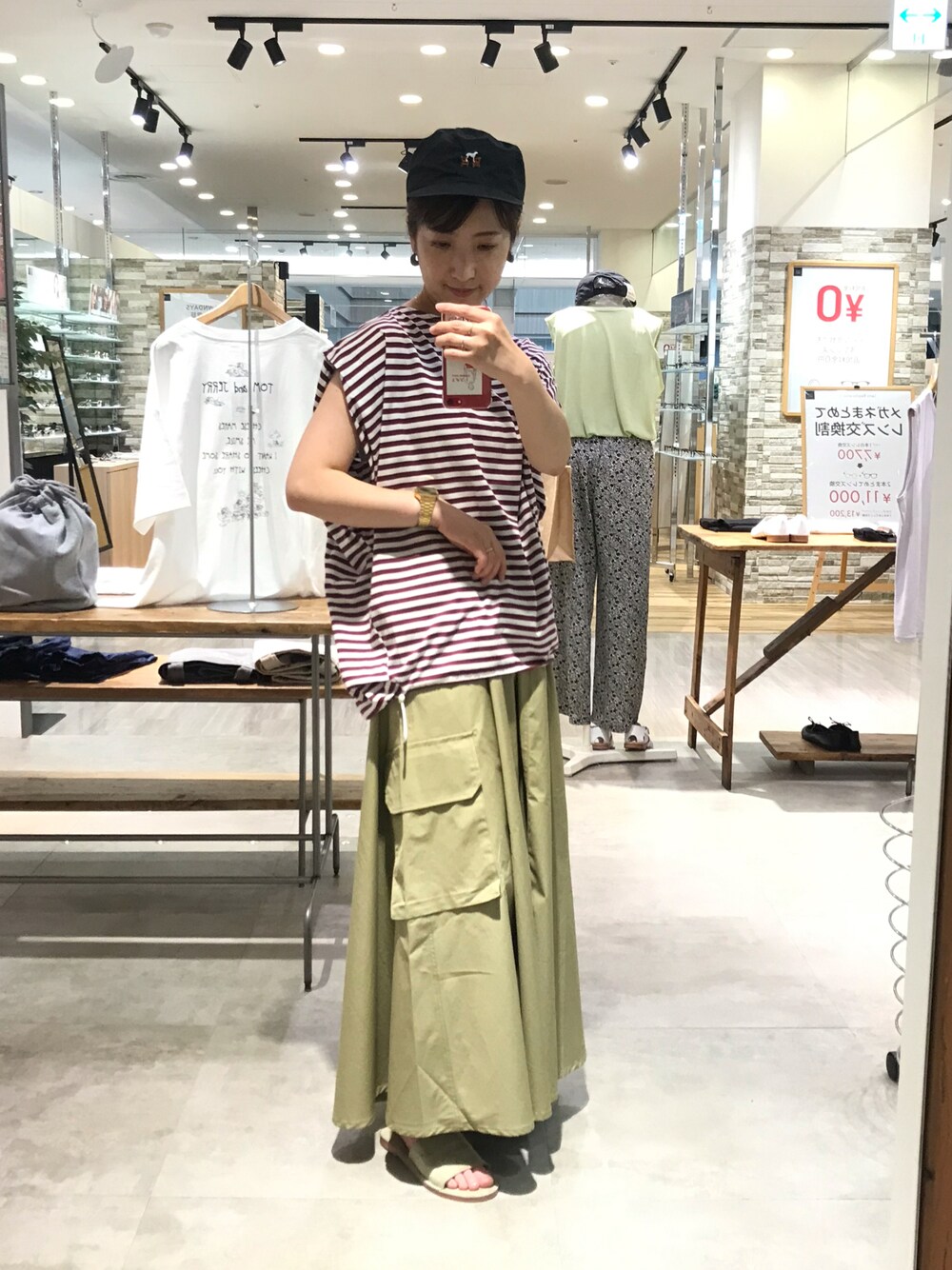 seinooo(pualcecin)のタンクトップ「裾ドローコード付きボーダーノースリーブ」を使ったコーディネート