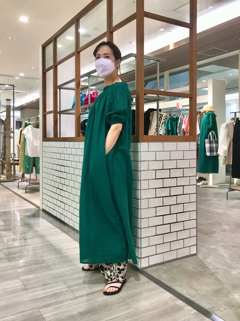 綿麻のロングワンピース。 花柄のパンツを合わせてリゾートっぽく🏝