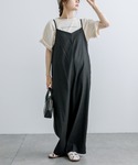 カジュアル強めのロゴTは大人サロペと合わせてスッキリ。