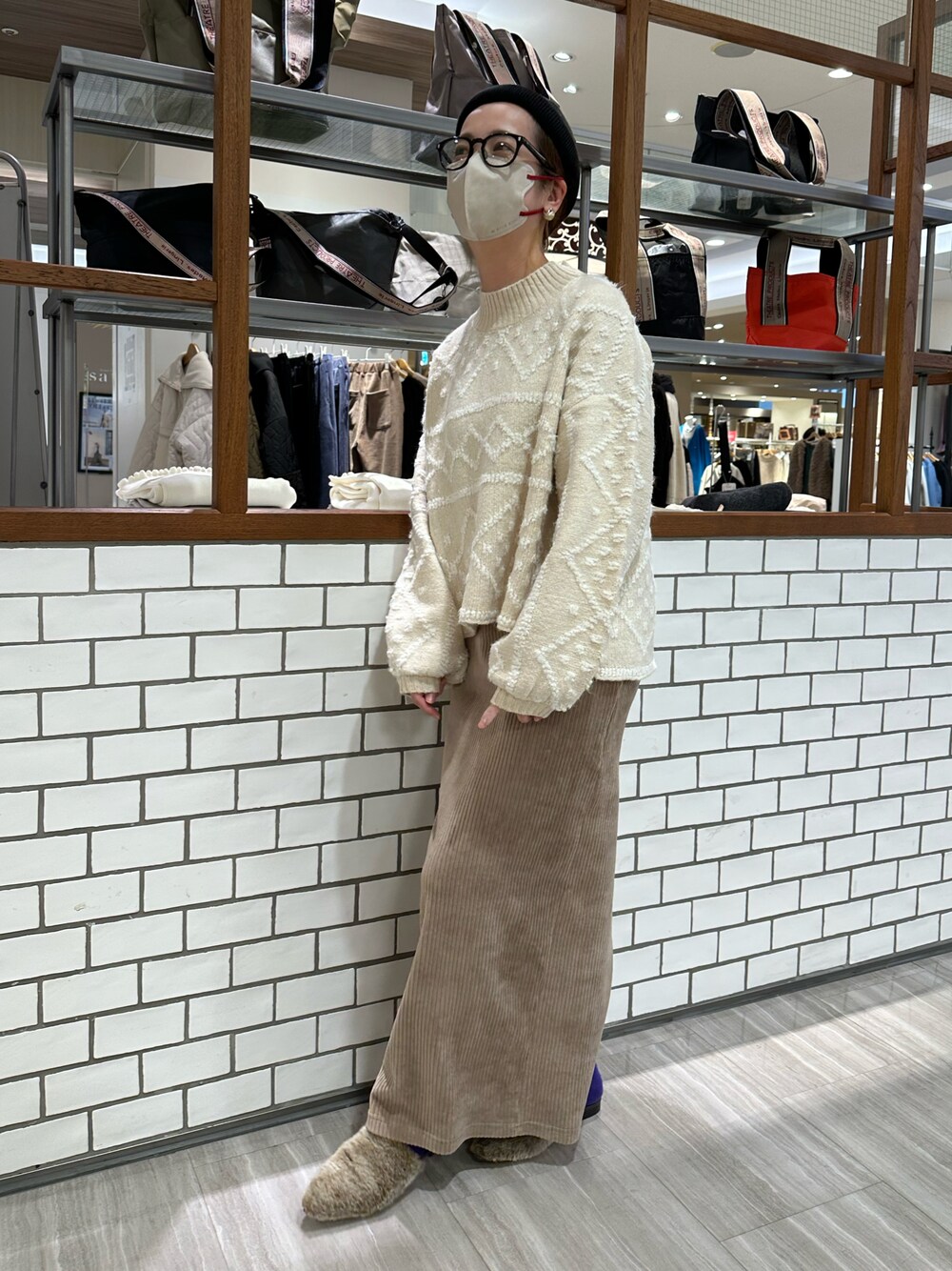 一枚で着映えするジャガードニット🧶 着丈が短めなのでコールテンのペンシルスカートに合わせてます。