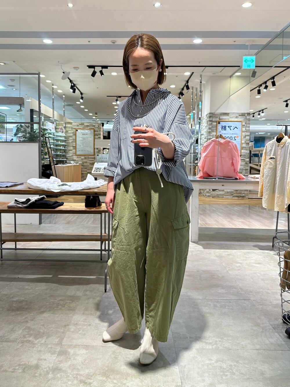 ⋆Insta / @sein___000 ブルーストライプ×カーゴパンツ 白ブーツできれいめに。