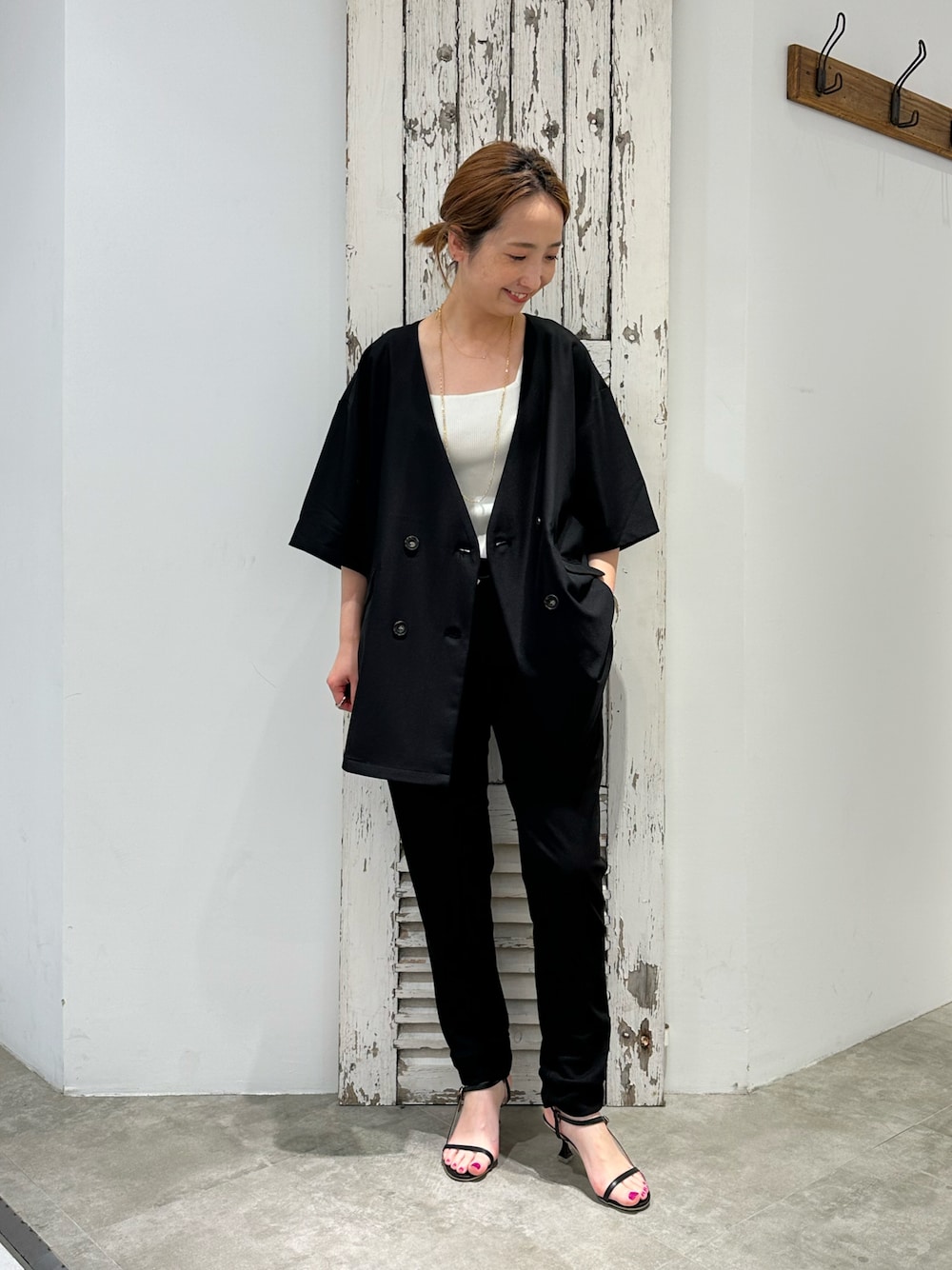 seinooo(pualcecin)のノーカラージャケット「【Du noir】ハーフスリーブジャケット」を使ったコーディネート