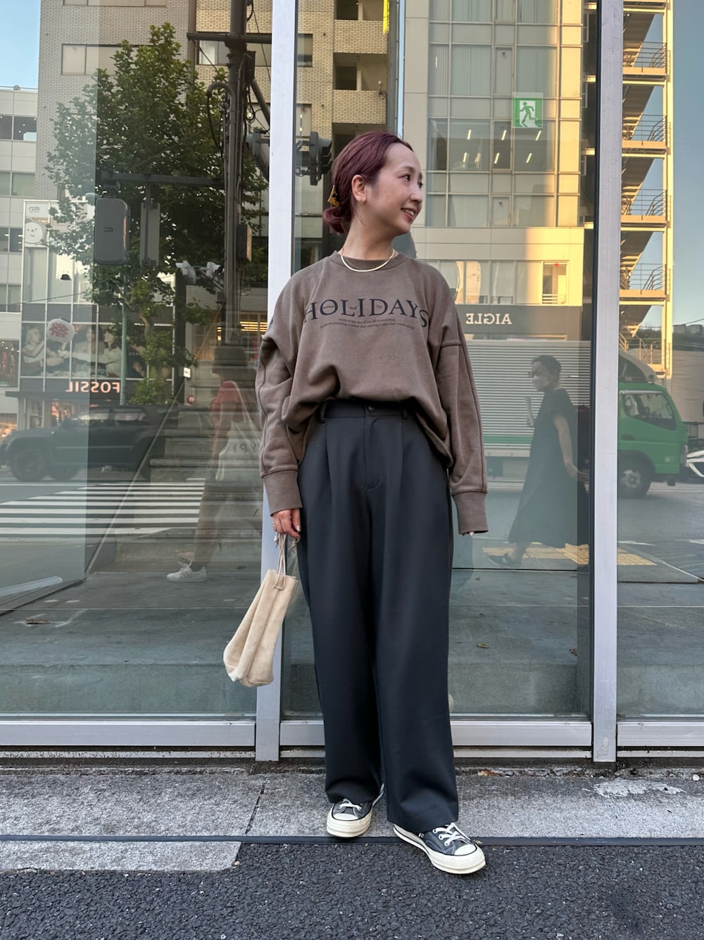 ⋆Insta / @sein___000 骨格ウェーブさんにおすすめのクロップド丈のスウェット。 スカートに合わせても絶対可愛い♡