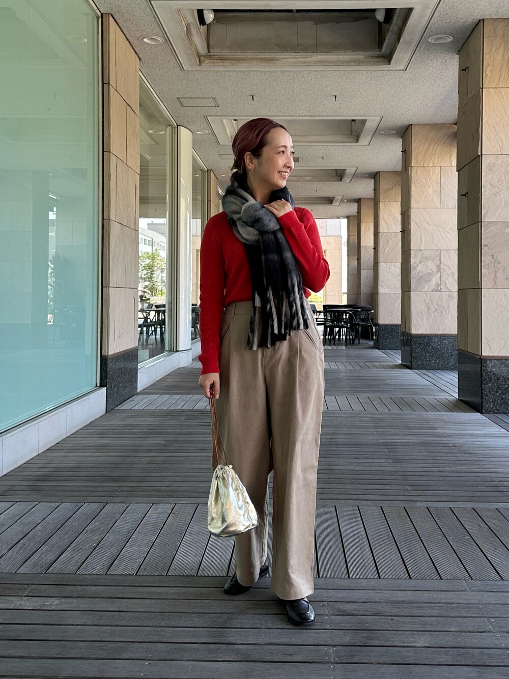 Instagram…@sein___000 赤を効かせたシンプルコーデ