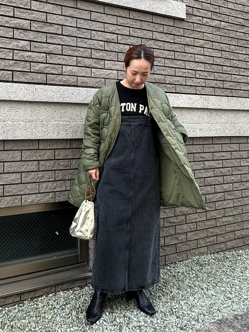 ⋆Insta / @sein___000 黒コーデに、相性の良いカーキダウン合わせ。