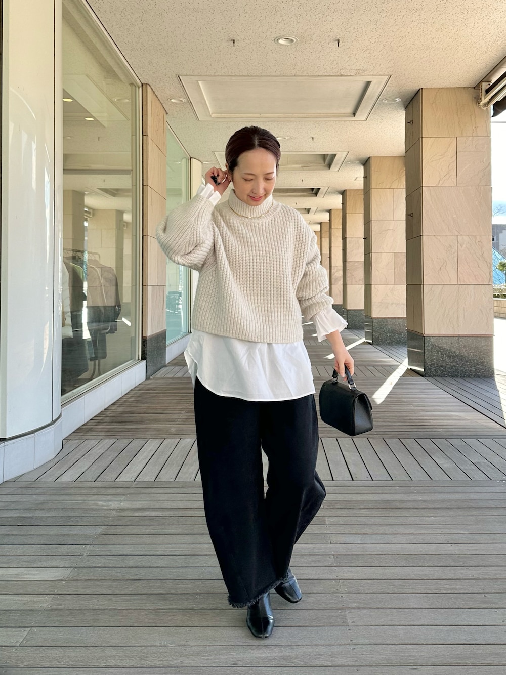 seinooo(pualcecin)のニット/セーター「【セットアイテム】袖フレアブラウス+ハイネック畦ニットSET」を使ったコーディネート