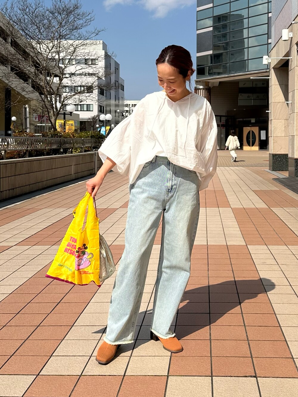 ⋆Insta / @sein___000 ボリューム袖がポイントのスキッパーブラウスでシンプルデニムコーデ