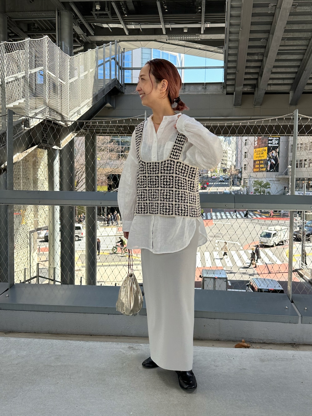 ⋆Insta / @sein___000 リネンシャツにかぎ針編みのニットビスチェをレイヤード。