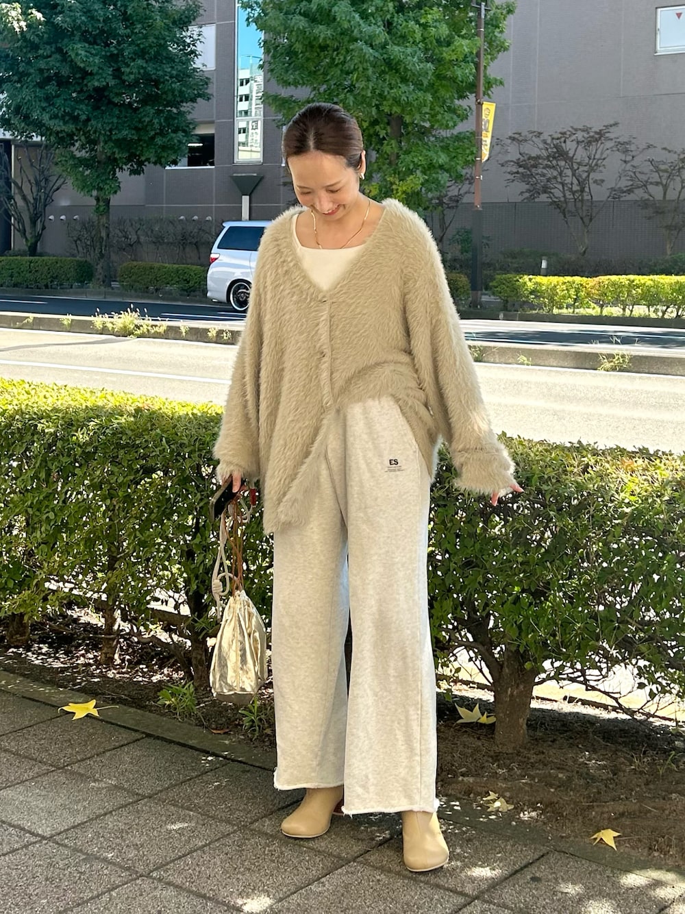 シャギーカーディガンで秋の淡色コーデ
