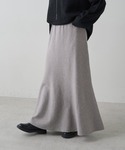インナーとスカートをニットでまとめた秋コーデ。羽織りには軽さが特徴のダンボールパーカーを合わせました。