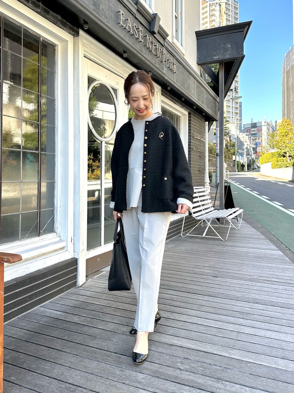 seinooo(pualcecin)のノーカラージャケット「スラブツイード ノーカラージャケット」を使ったコーディネート