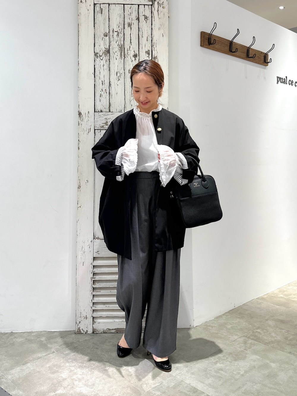 セレモニーコーデに欠かせないのがアウター。 アンティーク調のボタンが可愛いコクーンシルエットの大人コートです。