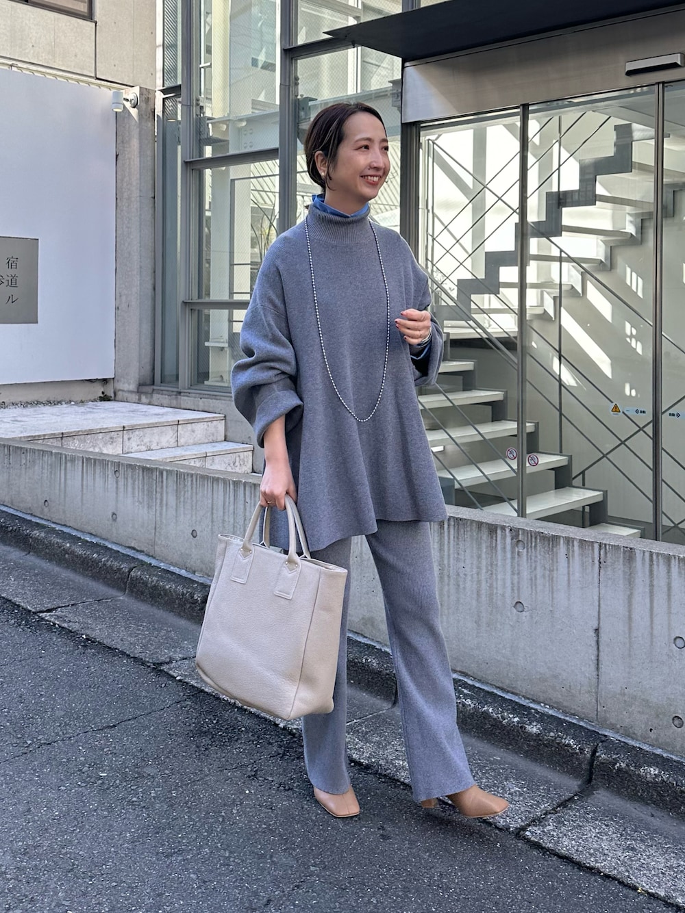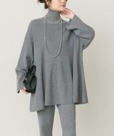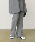 細見えが叶うニットセットアップ。 インナーにシャツをレイヤードして首元から覗かせました。