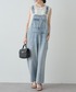 ラミーリネンシャツにデニムサロペットを合わせた大人カジュアルコーデ。