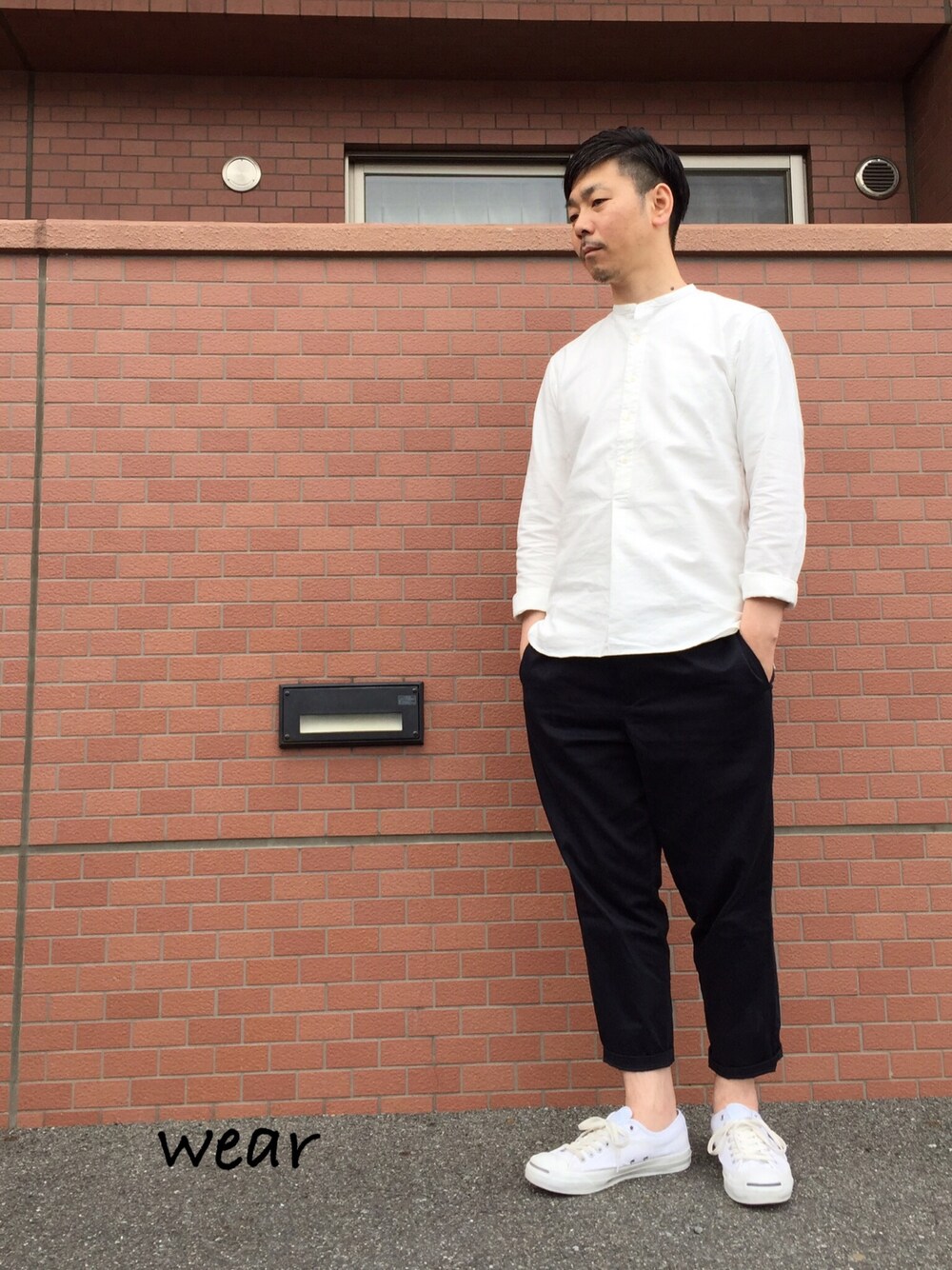 白紺白、ノーカラーシャツは首が長く見えちゃいます。元々長いのですが。😂