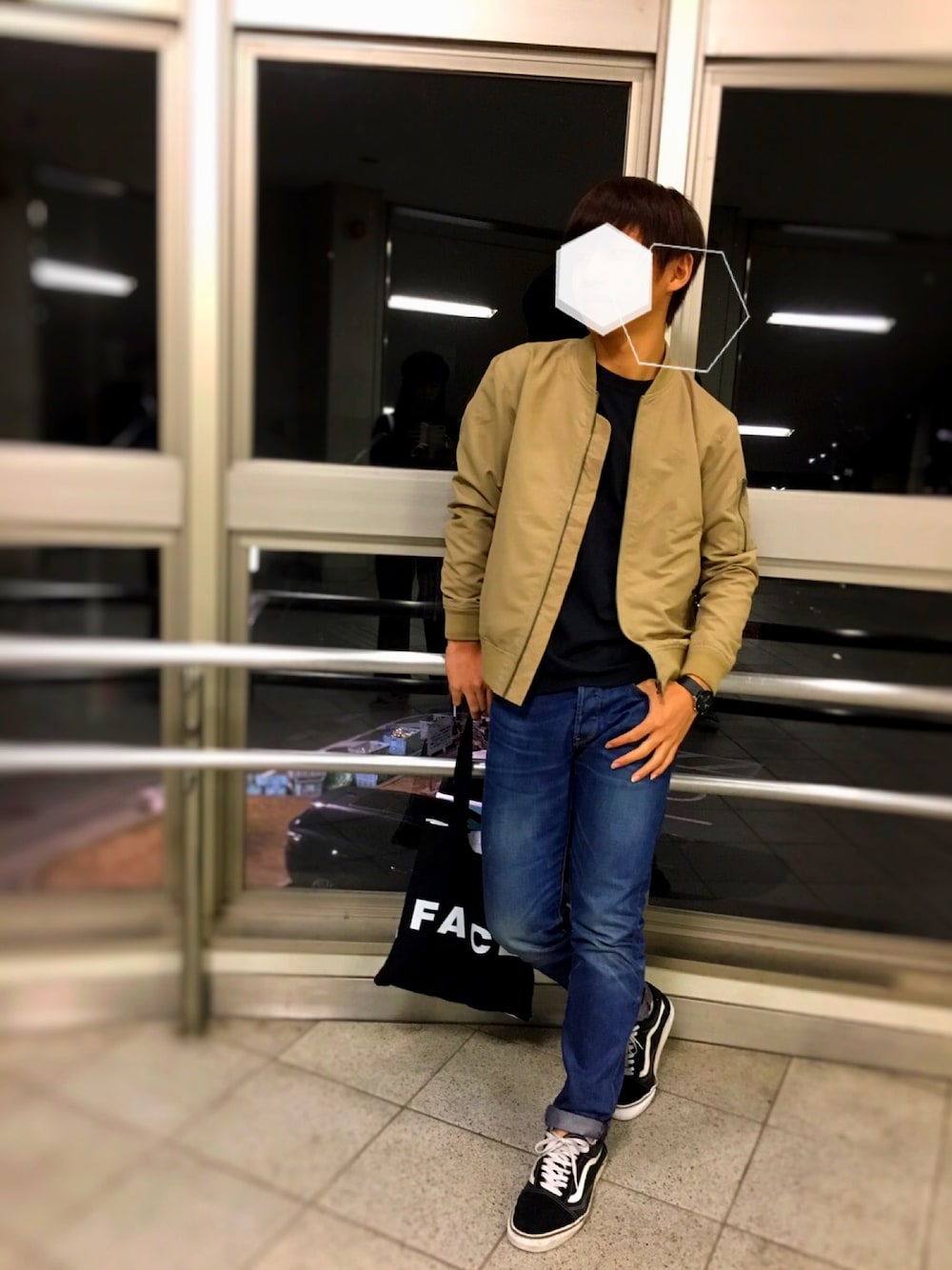 今まではパーカー・スウェットが多かったのでMA-1で決めてみました! 濃いめのデニムは、テーパードなのですごく履きやすく見た目も綺麗に見えます!😚 インナーの、チャンピオンは胸元に刺繍があり一枚手間も着れます!👍✨