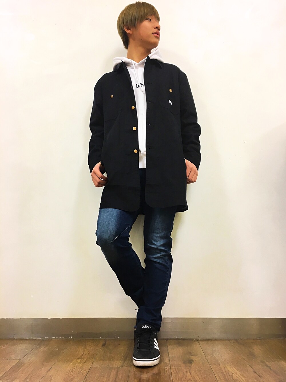 今日のコーディネート✨ 今日は春にかけてきやすい服を着てみました!🌸 LeeとG-STARRAW! パーカーとショップコートは新作!😋 パーカーのロゴは刺繍で小さめのワンポイントだけだからすごくオシャレ! ショップコートは少し薄手で、室内で仕事する時や少し寒いなと思った時でもきやすい感じ!👌 裏地は少しこっていて、とても可愛い感じです🎶 ショップコートは春や秋に使いやすく冬でもそんなに寒くなければ使えて一枚あれば使えて何にでも合うのですごくおすすめです✨ ボトムスのG-STARは新しい形! JEANS SWEET ジーンズスウェットです! ウエストがゴムになっててお腹周りは気にならない! そして何よりほかのボトムスに比べてストレッチや素材がとてもやわらかくとても履きやすくなってます!デニムが嫌いな人でもスウェットのズボンみたいに履けるのですごくおすすめです☺️ 内側にマチのある3Dタイプのボトムで見た目よりゆったりしている形です!💪 履きやすいし、色もとても綺麗で履いてる感じもすごくオシャレになると思います! ふくらはぎが閉まってる形なので足が長く見えるんで、僕も長く見えるように頑張ってとりました!笑笑 ほかのボトムに比べてスタイルがめちゃくちゃ良くなりました!