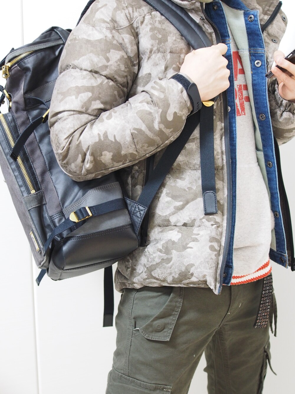 デニムジャケット:cook jeans シャツ:Juddycorn カーゴパンツ:cook jeans カメラをいれてのお出かけ。 カーゴはタイトだけども動きやすくてぴったし。