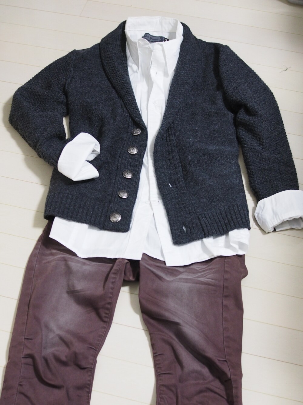 ジャケット:cook jeans シャツ:cook jeans パンツ:cook jeans 褪せ色デニムとニットジャケット。 もうちょいしたらこれだと暑いくらいになるのかなぁ。