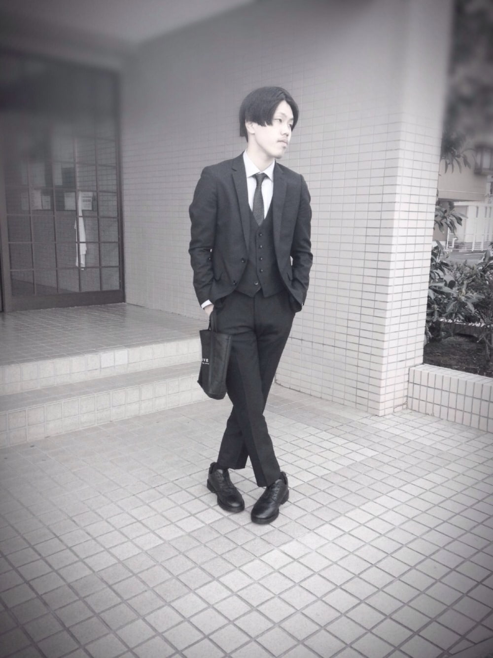 卒業式に行ってきました(。-_-。) スーツにSPECTUSSHOECO.のレザーシューズを合わせて👞
