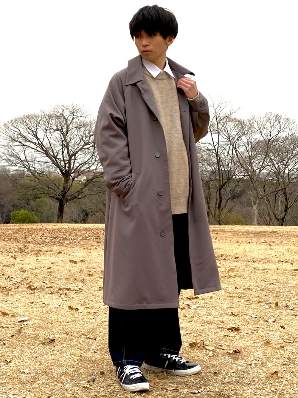 せーやのステンカラーコート「∴WEGO by こーせ/ステンカラーオーバーコート」を使ったコーディネート