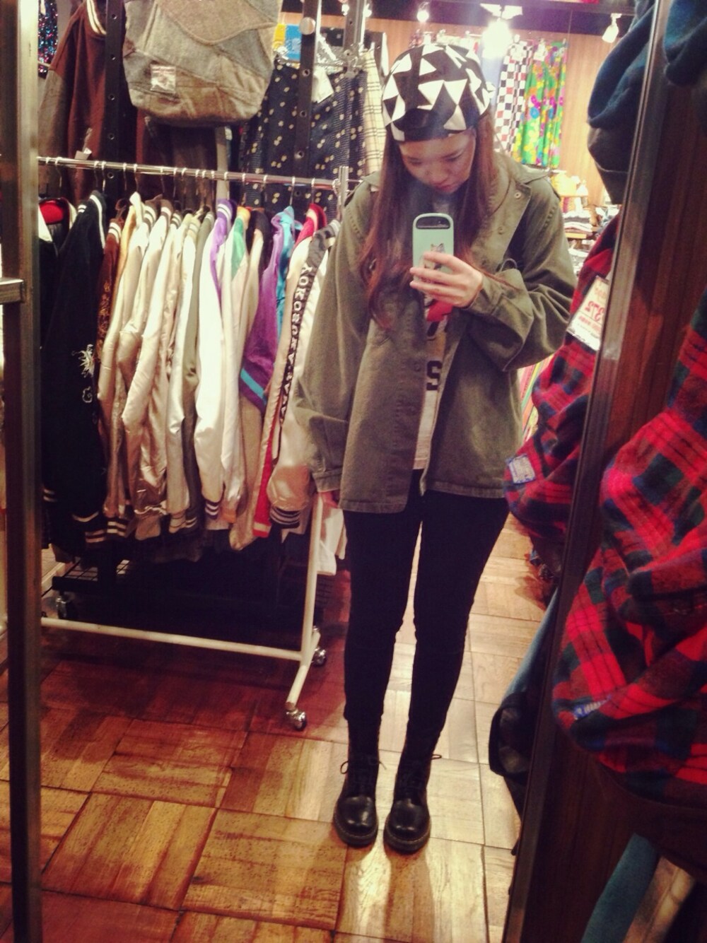outer # 古着 tops # 不明 bottoms #UNICLO bag #h&m acc # ? watch # CASIO glasses # ? socks #tutuanna shoes #dr.martens hat #DOPE
