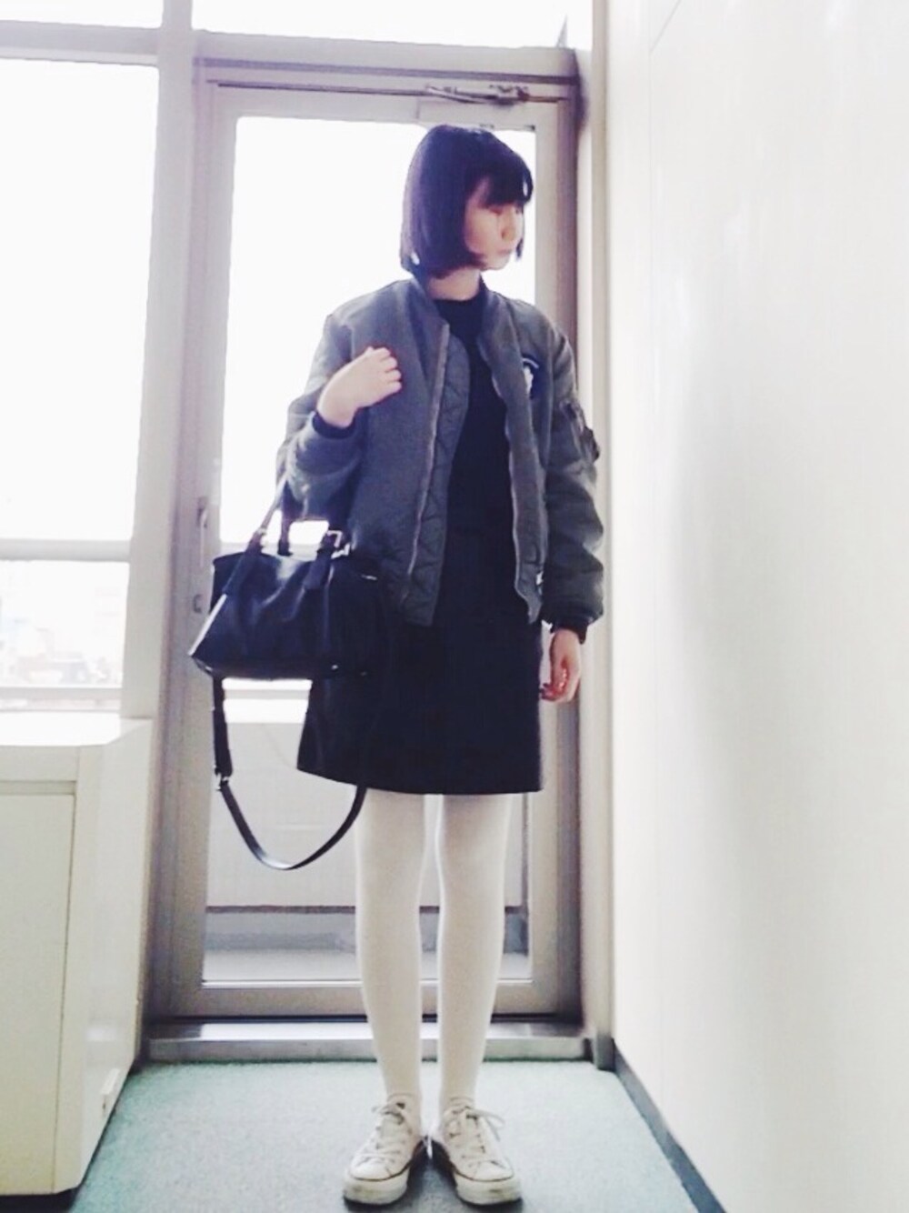 MA-1/used ニット/gu スカート/ZARA スニーカー/converse バッグ/ZARA