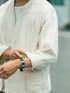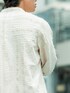 このアウターに注目して欲しい。 【Painted Blank -Assortment- 】"Work Jaket "Colmar" --- Philosophy --- このアイテムは、他モデルを作成するさいに出た不要な部分や、使いずらい薄手の端切れなど、無駄な部分を昇華することを最優先に考え試行錯誤したものです。 --- Story --- フランスの田舎町コルマールで生まれた音楽家を目指す一人の少年。その少年が大好きな小高い丘からながめているコルマールの美しい景色を、端切れを使って表現しました。縦横ランダムに敷き詰めた生地が独自の趣を生み出しています。 --- Detail --- ベースとなるのは、18世紀、ナポレオン時代からフランス兵士の作業着として着用され、音楽家や芸術家が好んで着用していたヴィンテージワークジャケットを、簡素でワイドな袖の仕様や、独特のバックスタイルなどはそのままに着丈やボタンの仕様などを現代に合わせて徹底的に着やすく再構築しました。 ボタンには、今は非常に希少な本水牛ボタンを ボディーカラーに合わせて使用。