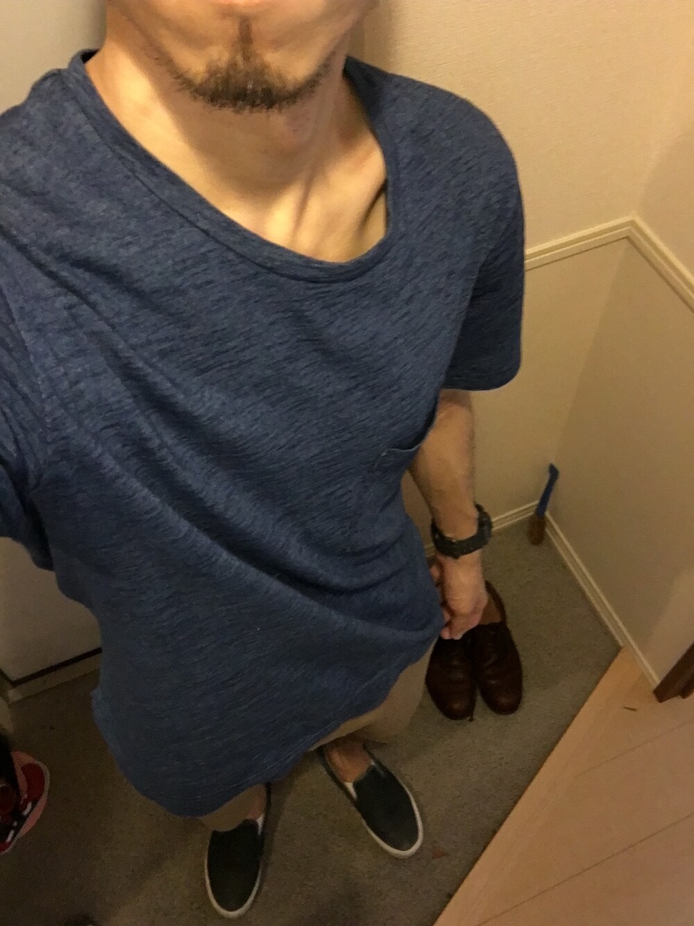 TaijiSekiのTシャツ/カットソー「BY インディゴ スラブ クルーネック Tシャツ¨」を使ったコーディネート