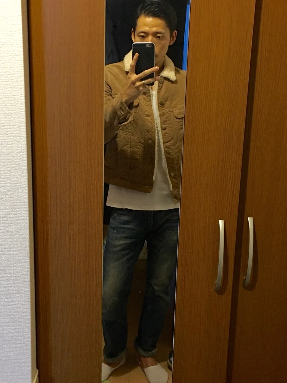 嫁の承諾を得てSHIPS JET BLUE別注のLeeのボアジャケット購入しました! Mサイズで良い感じ。厚手で割と細身だけど、ストレッチが効いていて窮屈さを感じません。袖以外の裏地は全てボアになっているので暖かそう。丈が短くて今っぽいけど、腰が少し寒そうかなぁ。 店員さん曰く、今年はインナーにタートルネックとか首に少しボリュームがあるものを着るのがオススメだそうです。 今年の冬はこれで乗り切ります!