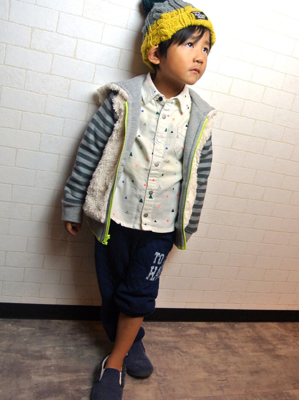 トワイカラーニット帽➕リバーシブルボアパーカー➕ビエラ起毛シャツ➕プリントキルトニットパンツ