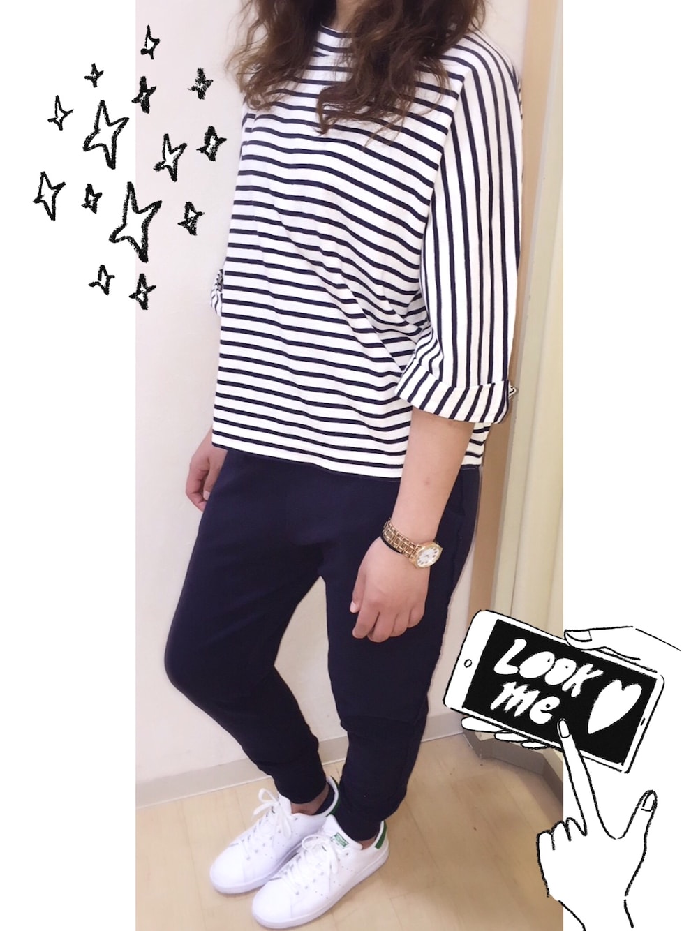 antiquite's ichi のボーダーTOPSにスエットパンツのおすすめコーディネート❣️小物以外、全てセレクトショップシエナ。