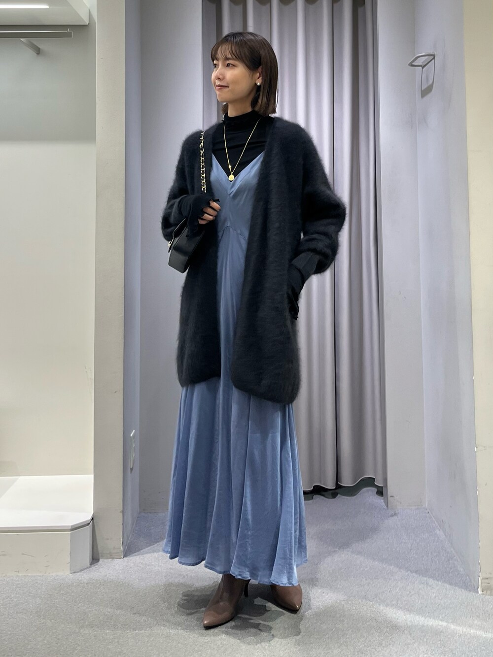 キャミワンピとラクーンを合わせて品のあるラフコーデに🫐💙