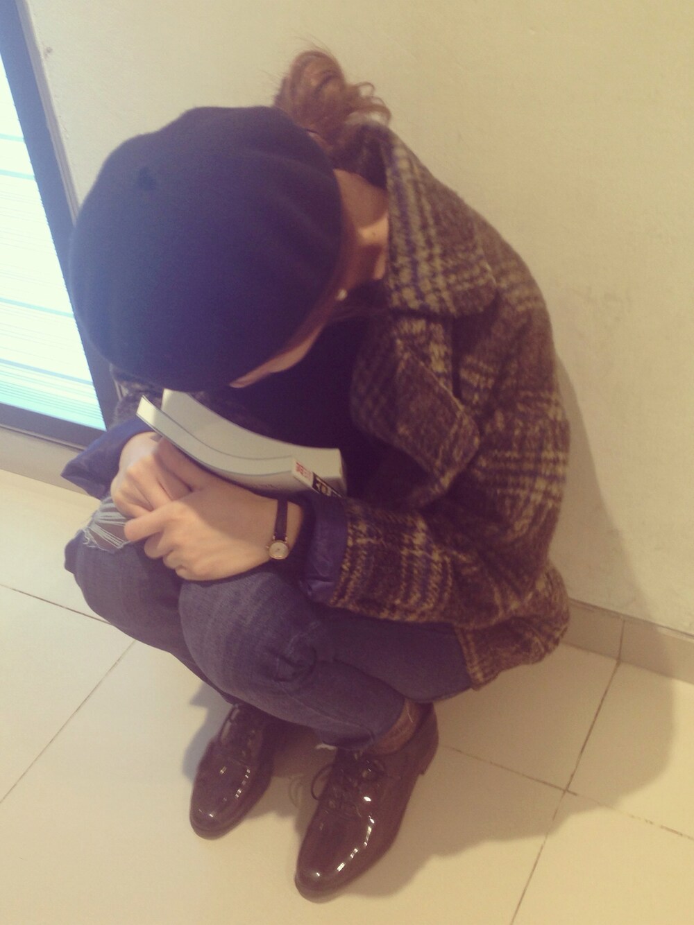 ベレー帽:ships コート:ブランド不明 デニム:古着 靴:aa 時計:paul smith
