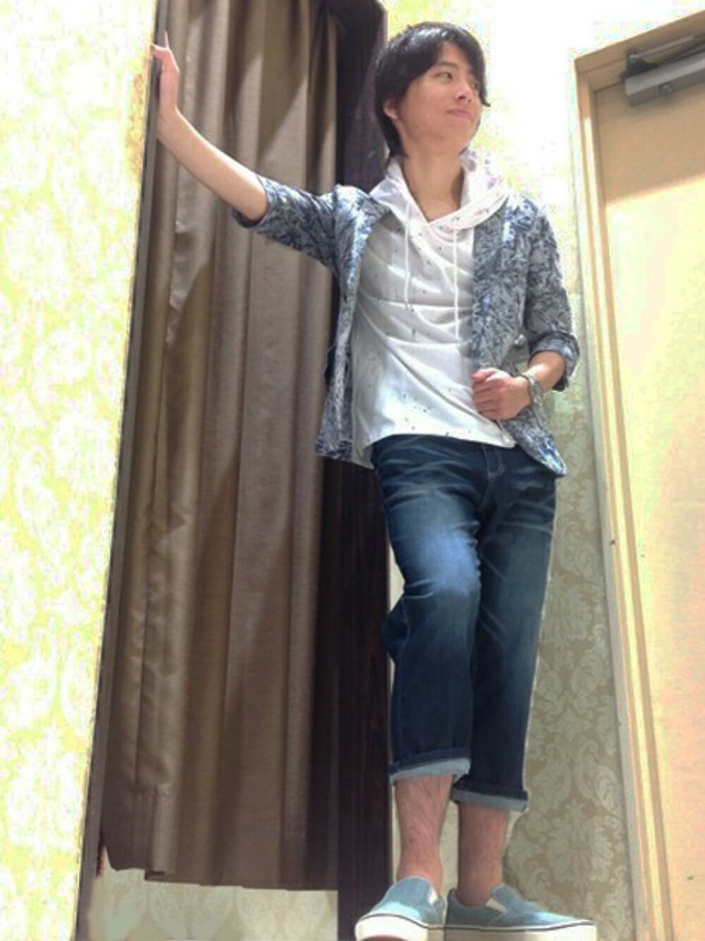 semanticdesignスタッフのテーラードジャケット「セマンティックデザイン/semanticdesign ジャガードリーフ柄半端袖テーラードジャケット」を使ったコーディネート