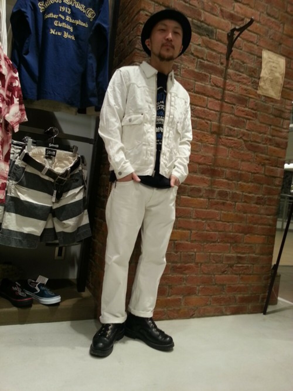 春全開、ホワイトデニムセットアップ。 パンツは敢えてワンサイズアップでごつめのブーツと合わせて、軽くなりすぎないようにしました。 雰囲気だけで春になります。