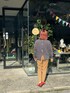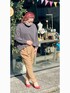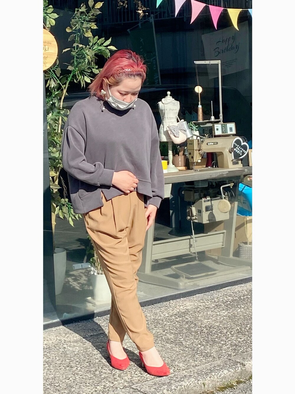 2023.5.10 少し肌寒い日のこーで。 トップスは後ろがチャックになっててかわゆいのだ☝️ パンツは数年前に履いてたけど 増量によりお休みしてたの復活できた✌️ 上が大人しめのカラーなので パンプスは赤で差し色に🟥