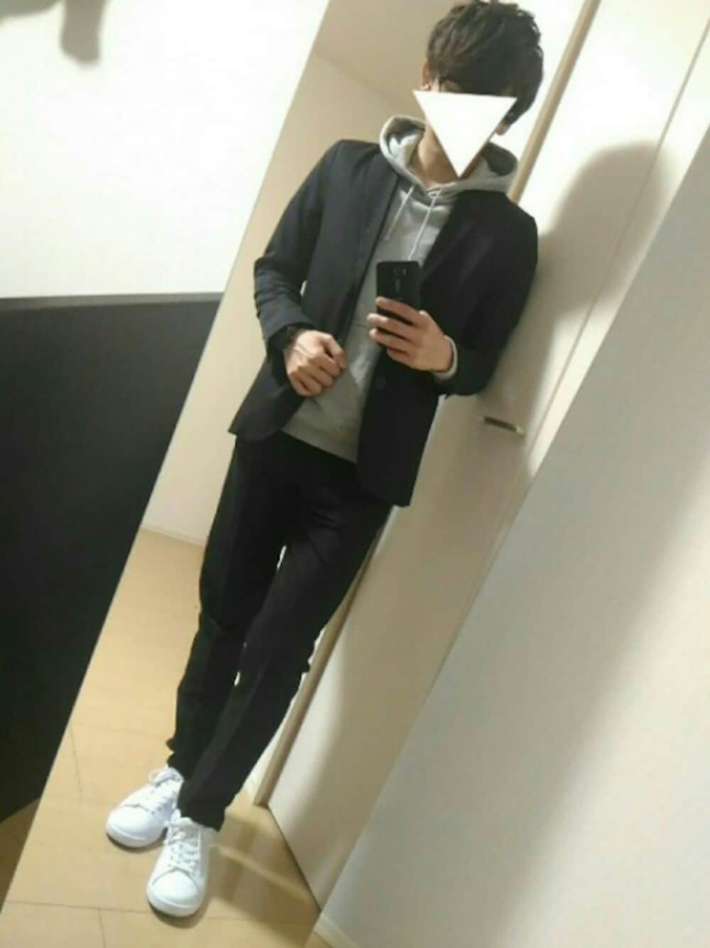 セットアップコーデ 定番ver お疲れ様です、瀬名です。 定番のパーカーを合わせたセットアップコーデです。 面白みはあまりないんですが、シンプルで使いやすいコーデだなーと。 そしてシンプルだからこそサイズは気をつけないとなーなんて思いました。テーラードはMサイズなんですが、もう少し細身でもよかったかな?あまり細身すぎると最近の流行り(?)とは逆行するのかもしれませんが(笑) あとは、このコーデを元になんかしらアレンジというか、小物なり差し色なりで個性を出せればいいなーなんて思ったりもしますので、なにかコレダ!!っていうのがあればアレンジverとしてUPしてみようかと思います。 なんかこう、オールホワイトオールブラックオールレッド!!みたいなコンセプトコーデでもしてみようかな。格好良さは度外視で、あるもの使ってですが笑