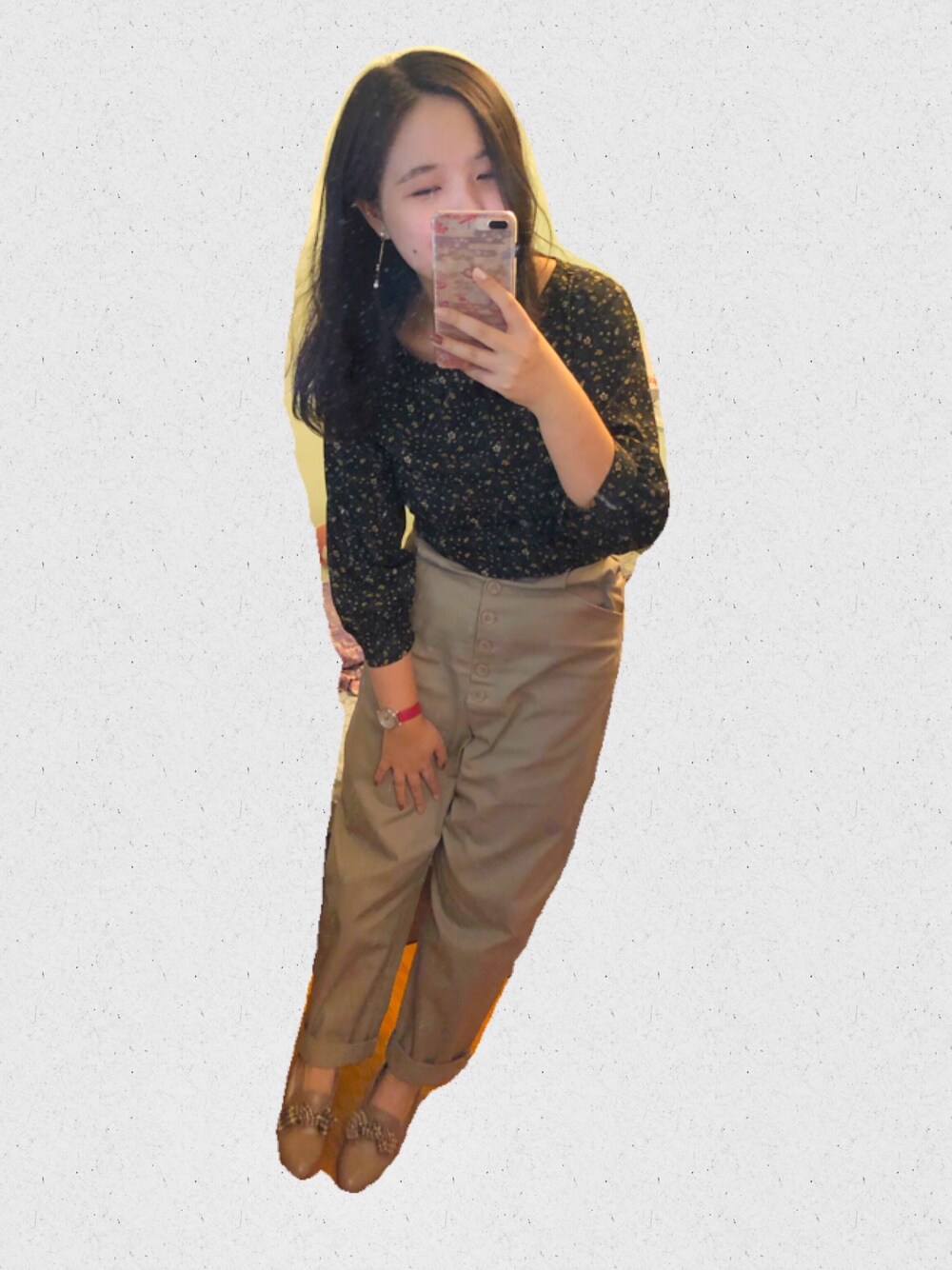 最近買ったグレーピンクのズボン ボタンのところも色も大好き💕💕 Earthの服も相変わらずかわいいかわいいい