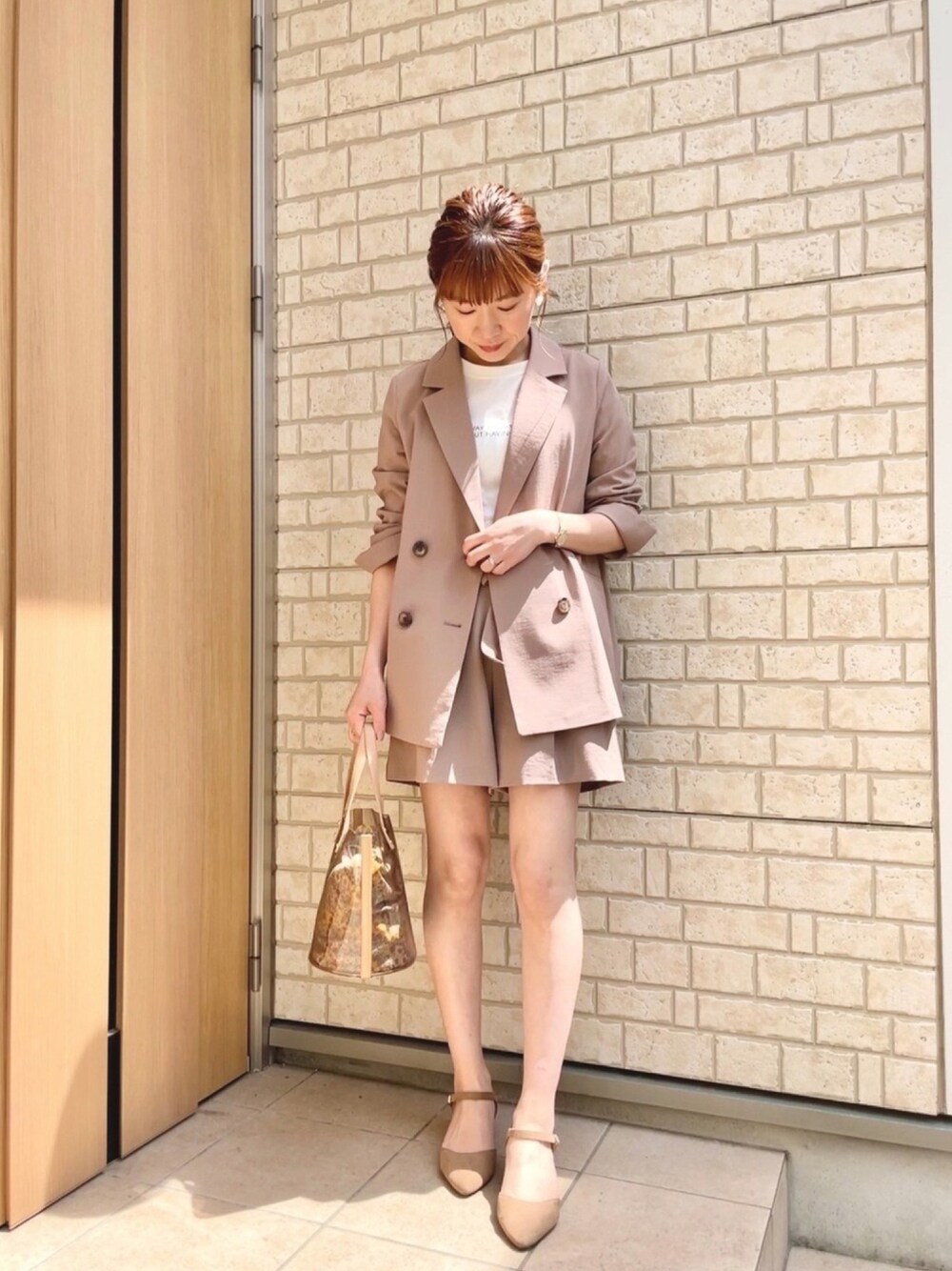 AI♡のテーラードジャケット「【Sシリーズ対応】◆麻調合繊ダブルブレストジャケット」を使ったコーディネート