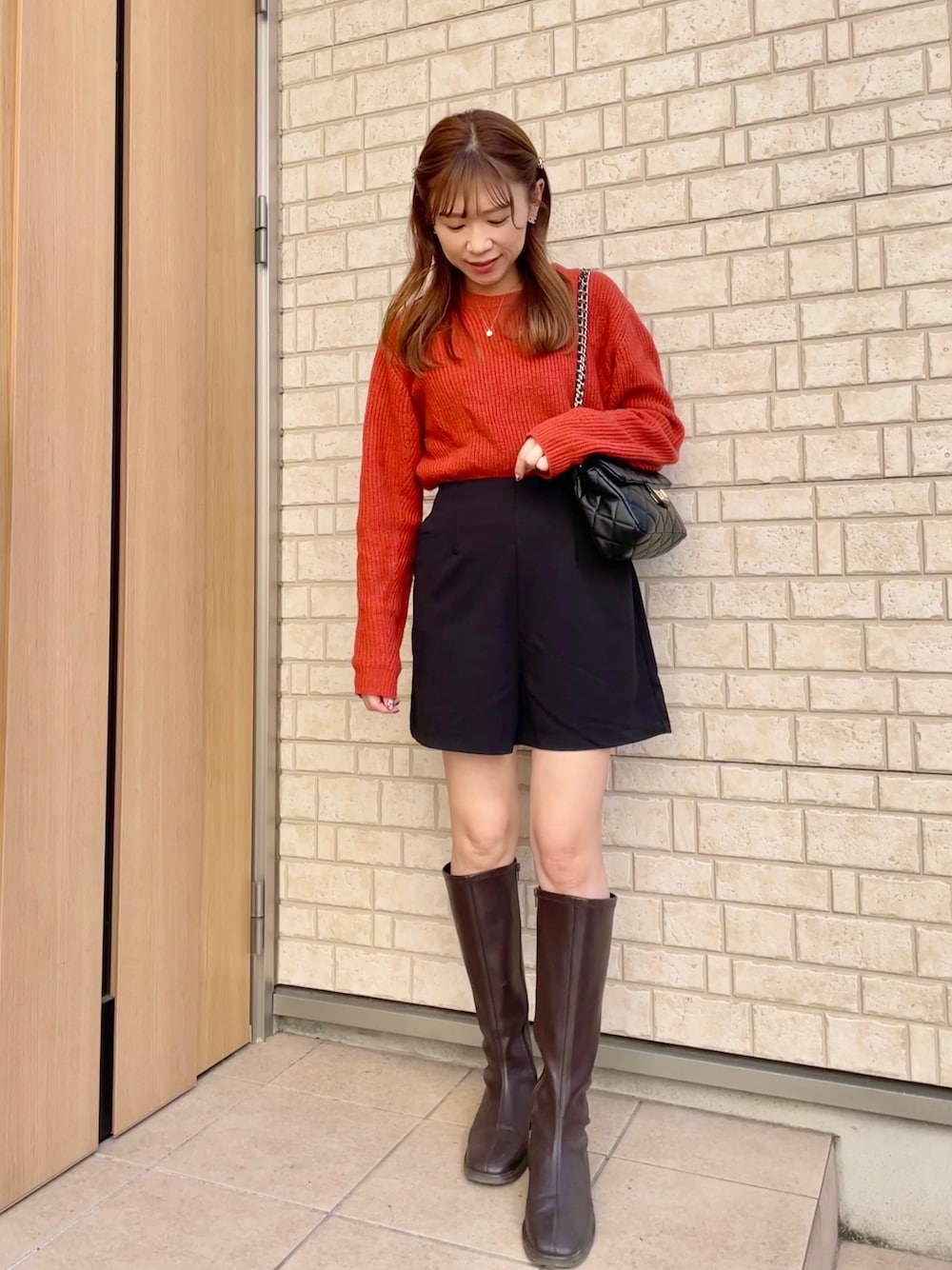 オレンジニットコーデ♡ 好きな色-! 旦那にプレゼントしたのを借りてる☺️🧡