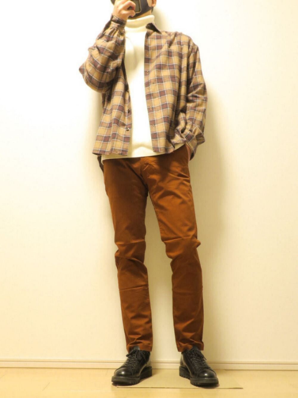 PUBLIC TOKYOのweb限定リラックスフィットタートルネックニットを買ったときの1コーデ。 ワントーンコーデにハマりだした中の一枚。 ようやく明るめのブラウンパンツの使いみちがわかってきた。 白のタートルネックをインナーに入れることで、ワントーンもしつこくならず、全体的な雰囲気も壊さない仕上がりになった気がする。