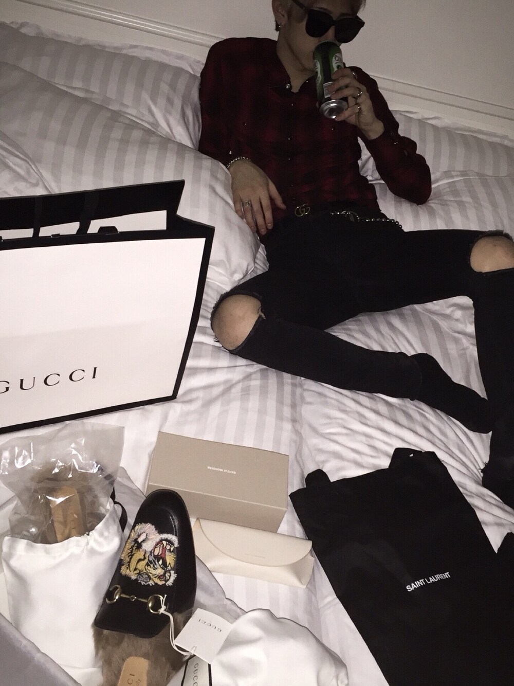 閲覧ありがとうございます パリで購入した物の一部です GUCCIのスリッパは普段履きに最適です😇 スキニーもエディの買えたので満足です😁 もう一本買えばよかった...