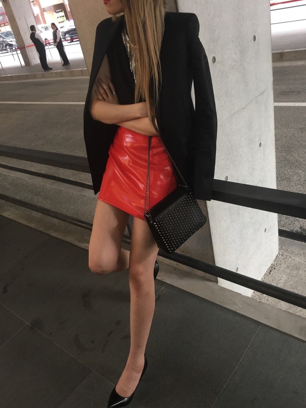 --code-- shoes・stevemaden skirt・miu miu tops・saint laurent jacket・GIVENCHY bag・Christian Louboutain