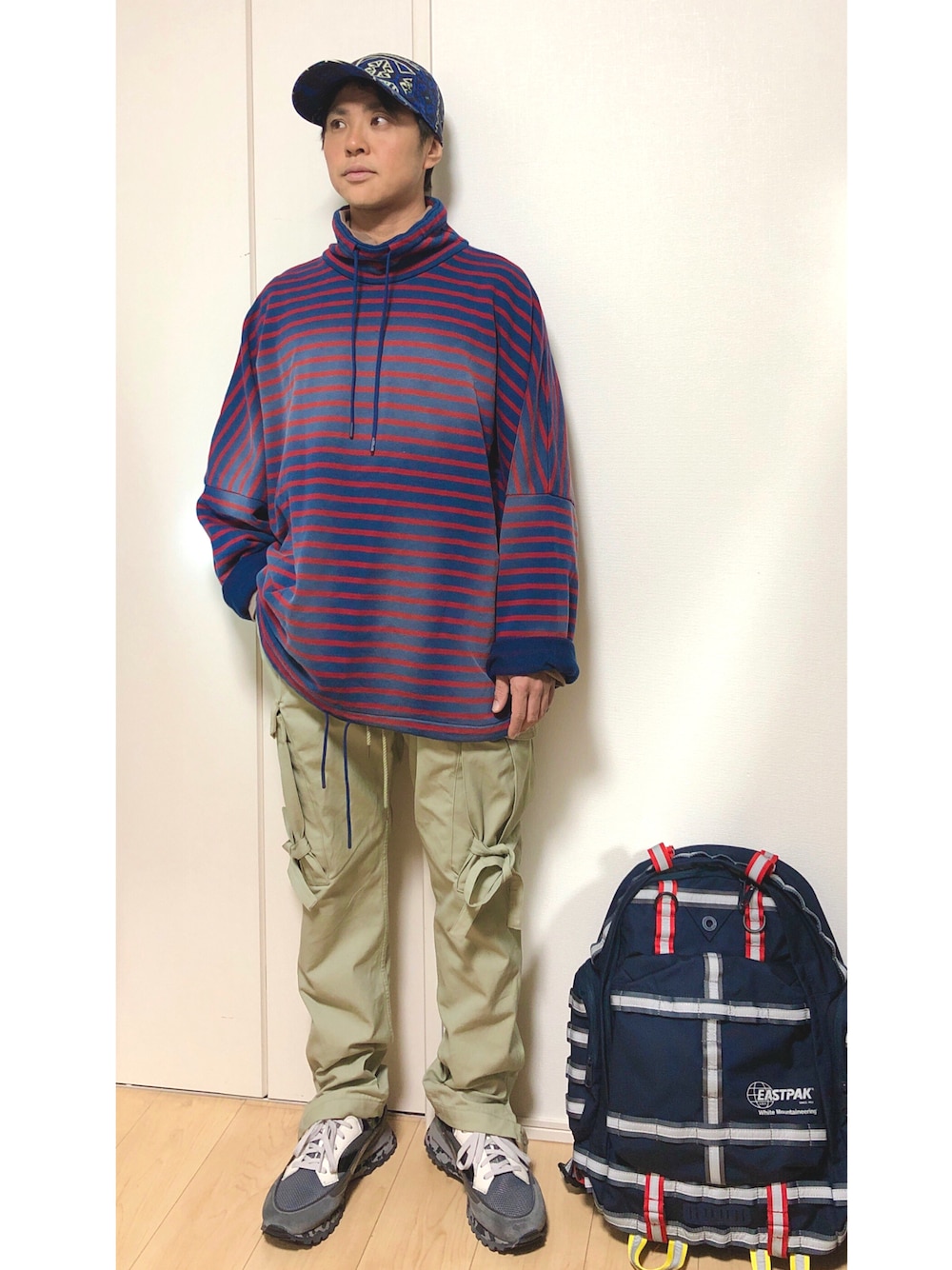 未使用のままだった柄キャップは、下野さんとこのです しかし 私はバリバリの堀木さん派...こんなの選んでおきながら 堀木さんには頑張って欲しいです ゆったりトップスの下にはダウンベスト着用 真冬も スウェットでいけます。 意表をついていきましょう