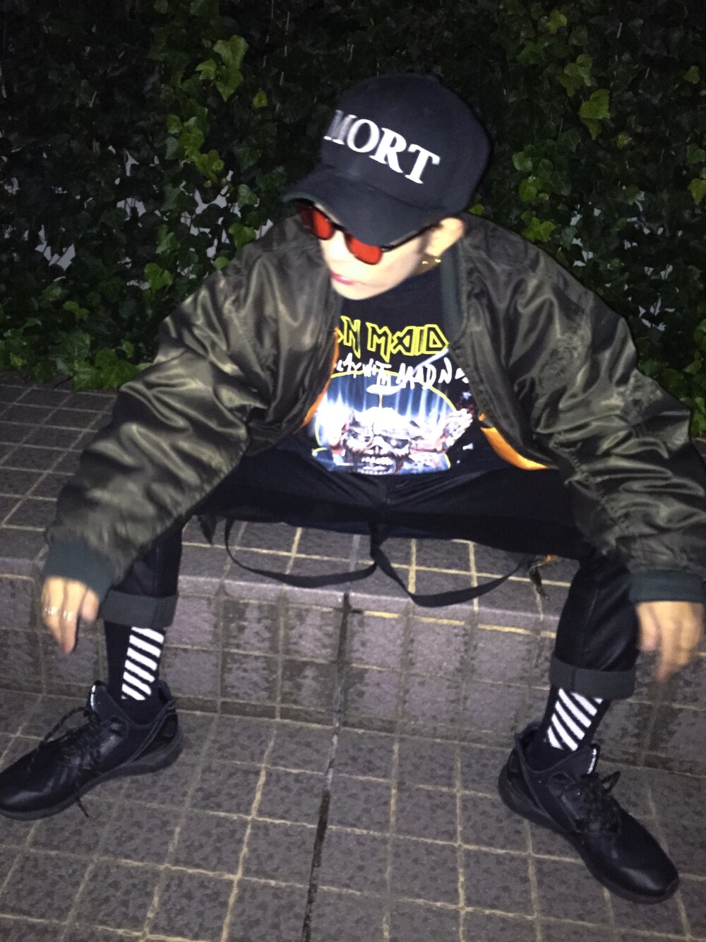 ミリタリーとバンドT相性◎ 今季も色々買いましたが結局一番着てるのは、古着屋で買った¥2000のMA-1。渋い色味と変に現代っぽく細身に絞ってない形がしっくり来ます。